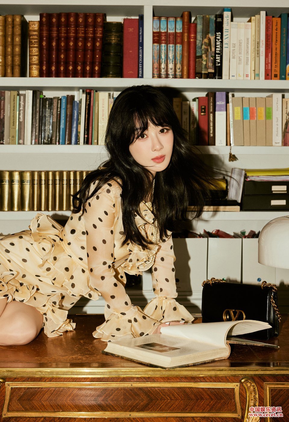 楊紫荷葉領(lǐng)點(diǎn)綴波點(diǎn)裙 使優(yōu)雅與活潑完美融合