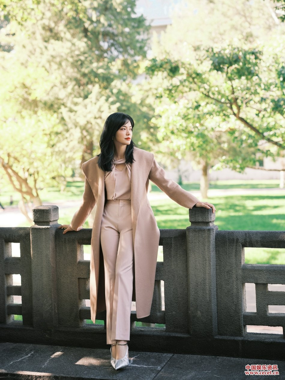 姚晨穿駝色毛呢大衣置身于暖陽(yáng)中優(yōu)雅知性
