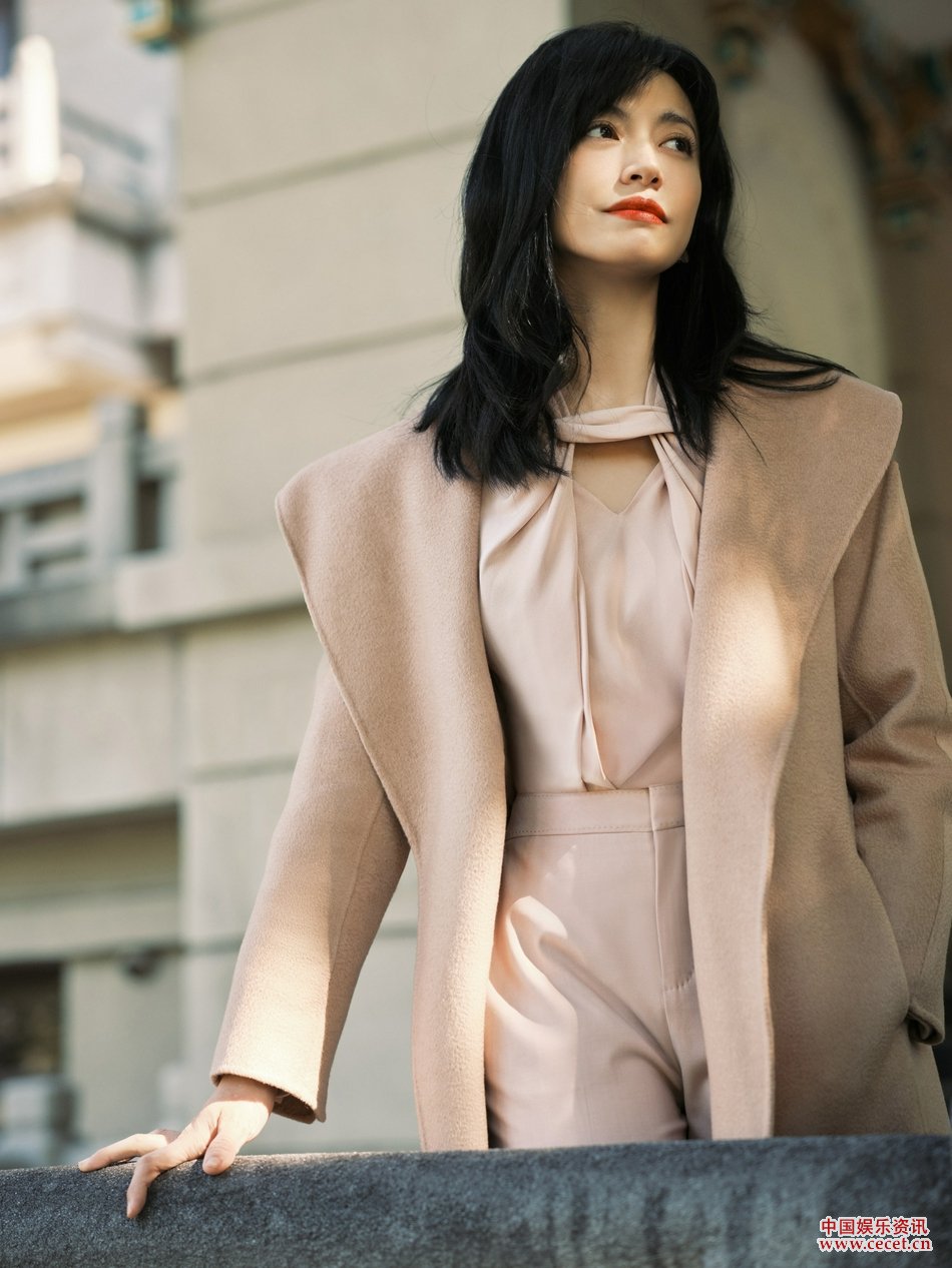 姚晨穿駝色毛呢大衣置身于暖陽(yáng)中優(yōu)雅知性