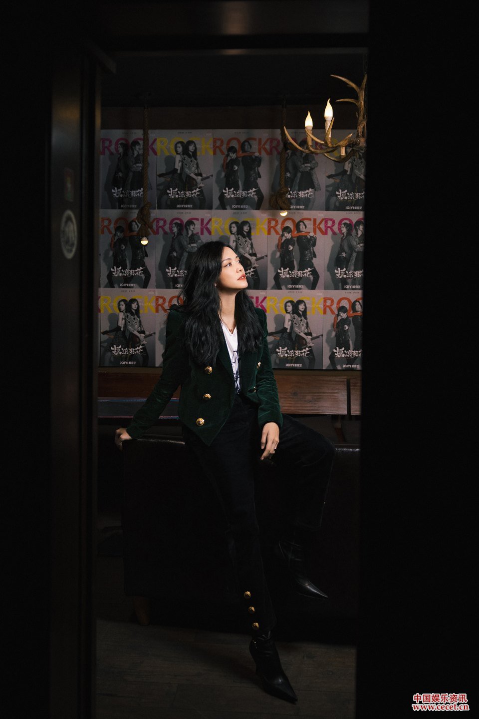 姚晨墨綠絲絨復古魅力 光影錯落搖曳摩登時(shí)尚