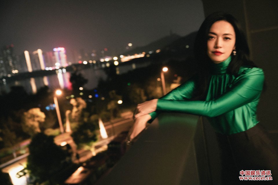 姚晨綠色長(cháng)衣搭配黑色條狀長(cháng)裙展露果敢自信