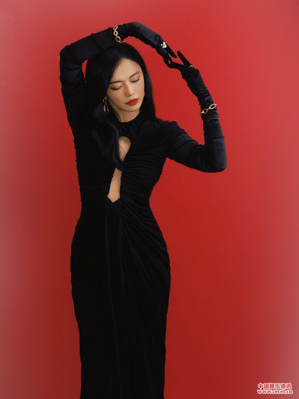 姚晨紅黑碰撞勾勒完美線(xiàn)條 深邃優(yōu)雅光影變幻如夢(mèng)