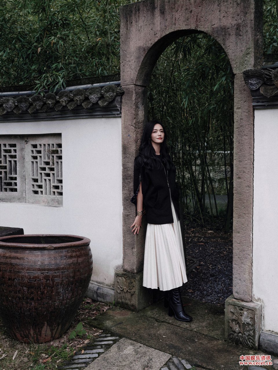 姚晨漫步于庭院一隅與幽靜相遇 颯爽愜意悠然縈繞