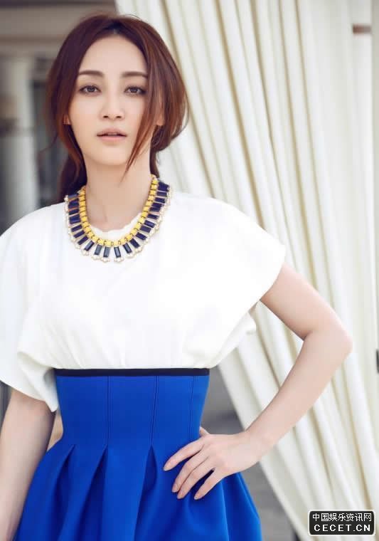 姚笛深藍主題寫(xiě)真 白色襯衣與藍色半裙相搭配
