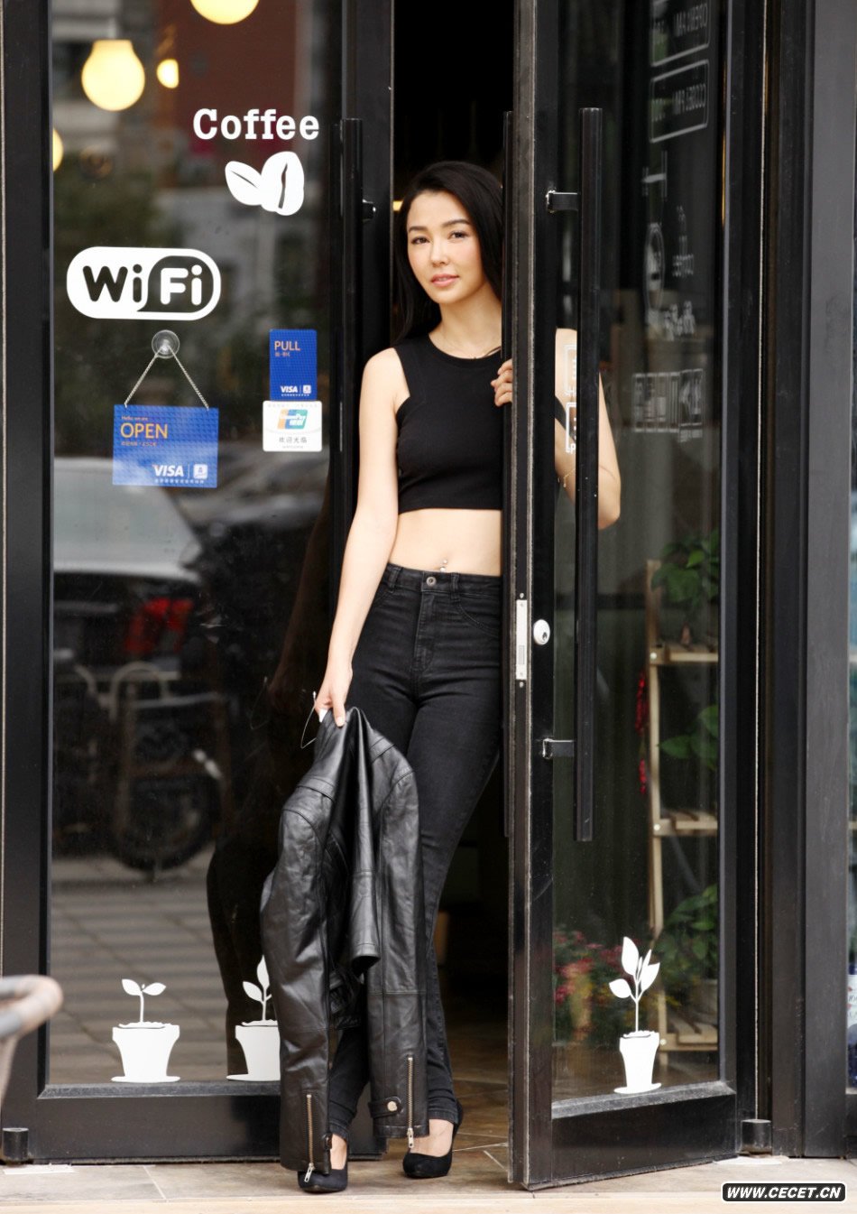姚星彤以黑白配造型出鏡 小露裊裊蠻腰