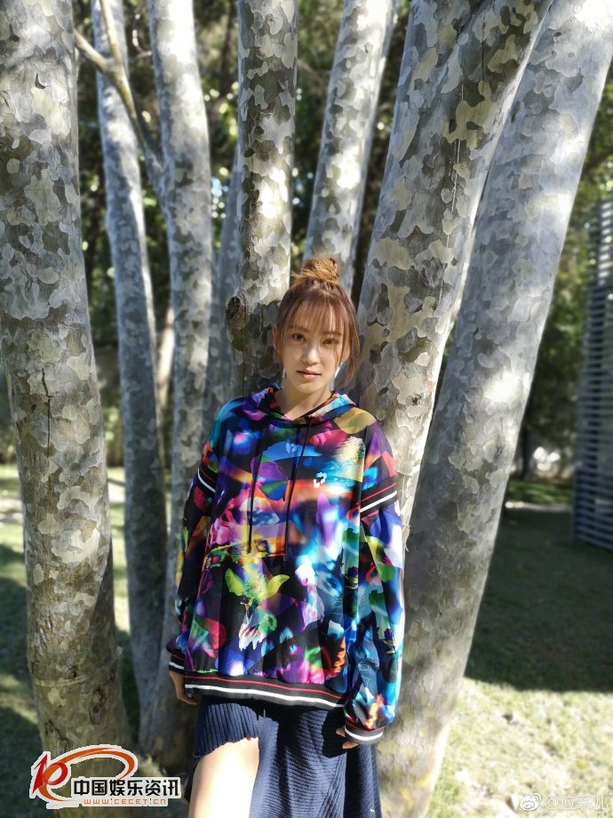 應采兒在樹(shù)叢間拍照 上演“下衣失蹤”粉嫩可愛(ài)