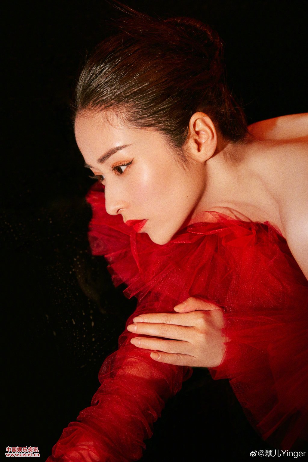 穎兒火紅抹胸長(cháng)裙亮相 閃閃惹人愛(ài)的摩登女郎