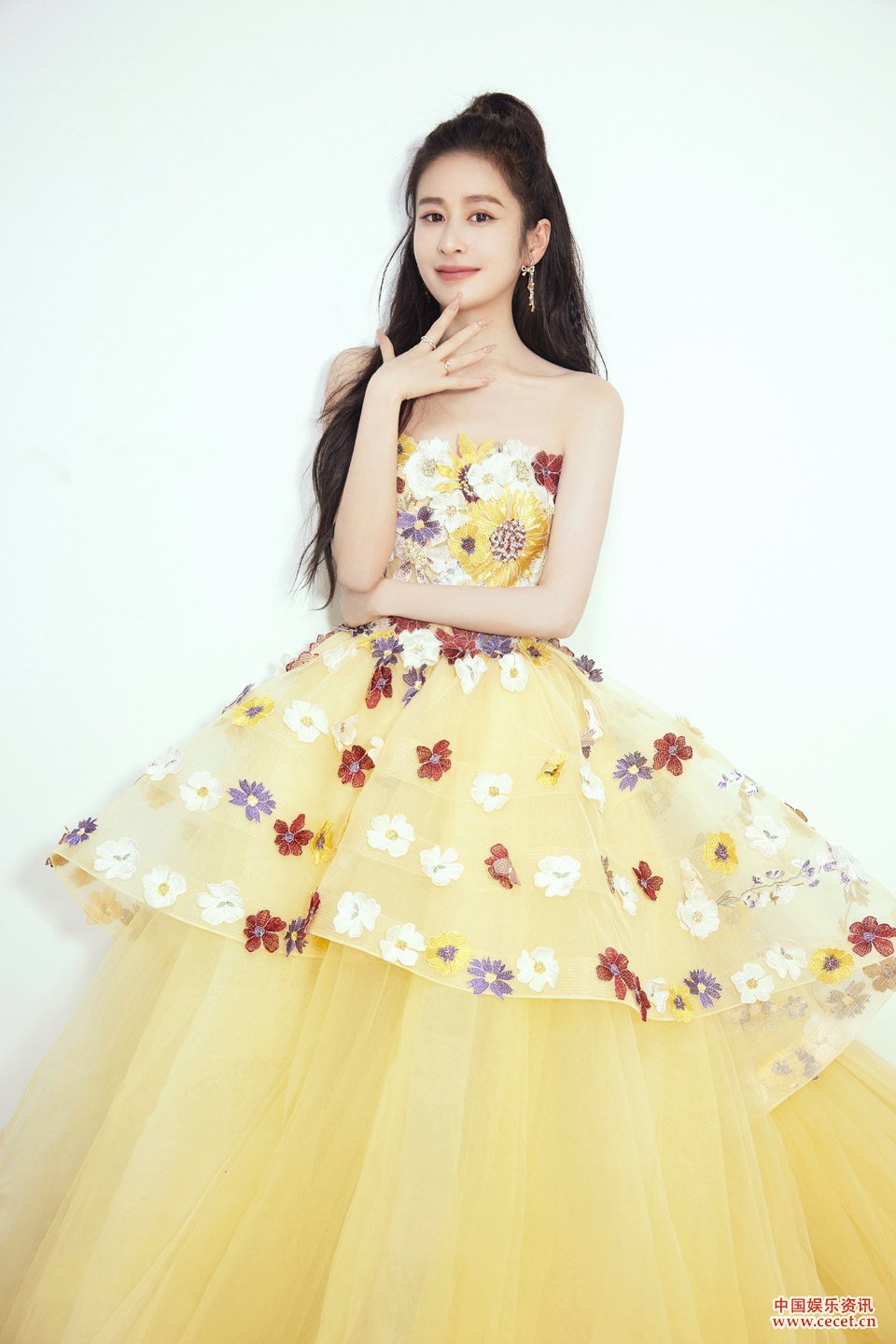 穎兒一襲繁花抹胸薄紗長(cháng)裙 仙紗浪漫笑靨如花