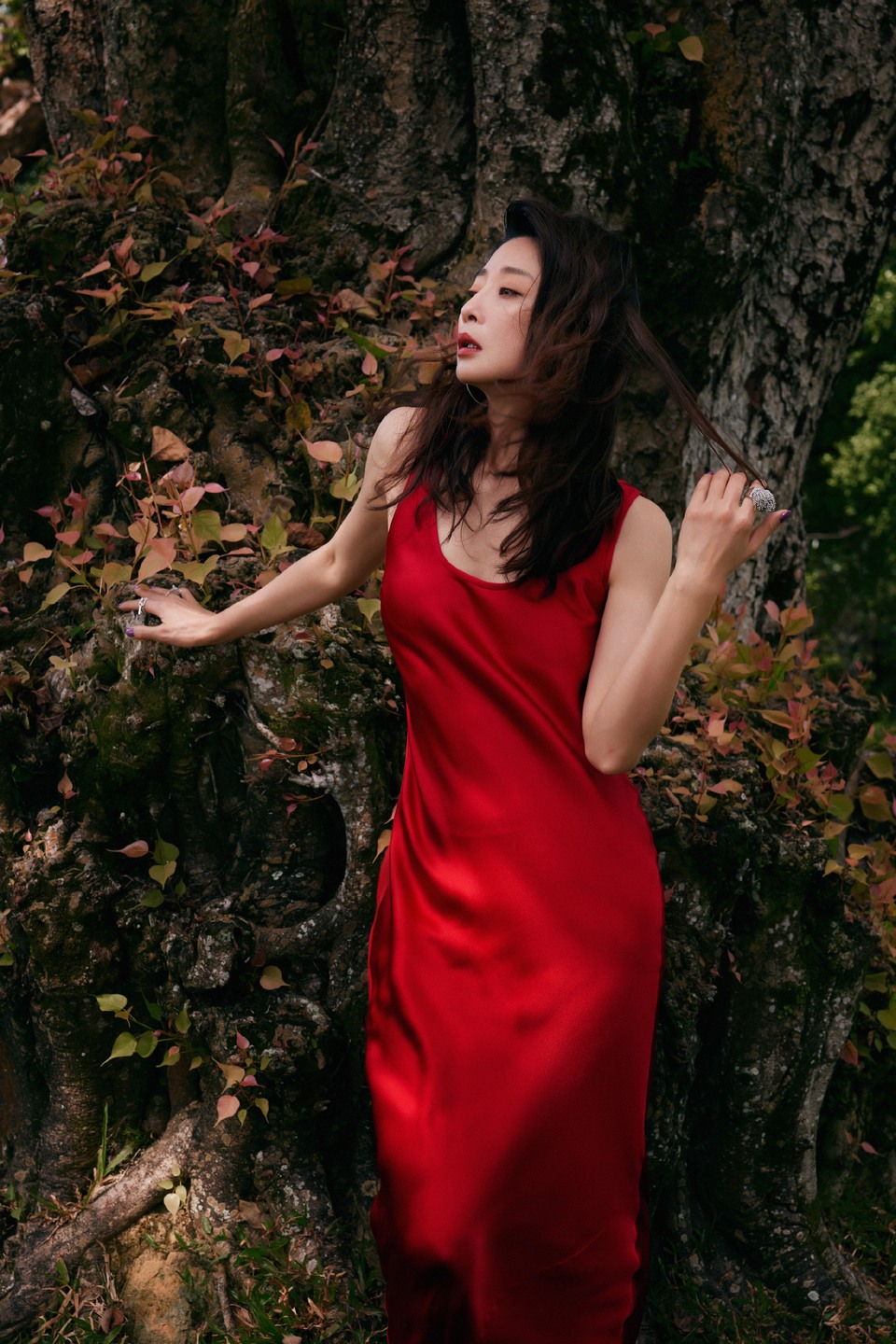 殷桃裙擺輕拂勾勒曼妙曲線(xiàn) 春暉之下綻放永恒玫瑰