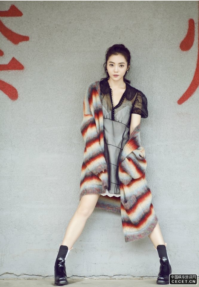 尹雨航個(gè)性活潑超吸睛 歐根紗連衣裙毛衣外套