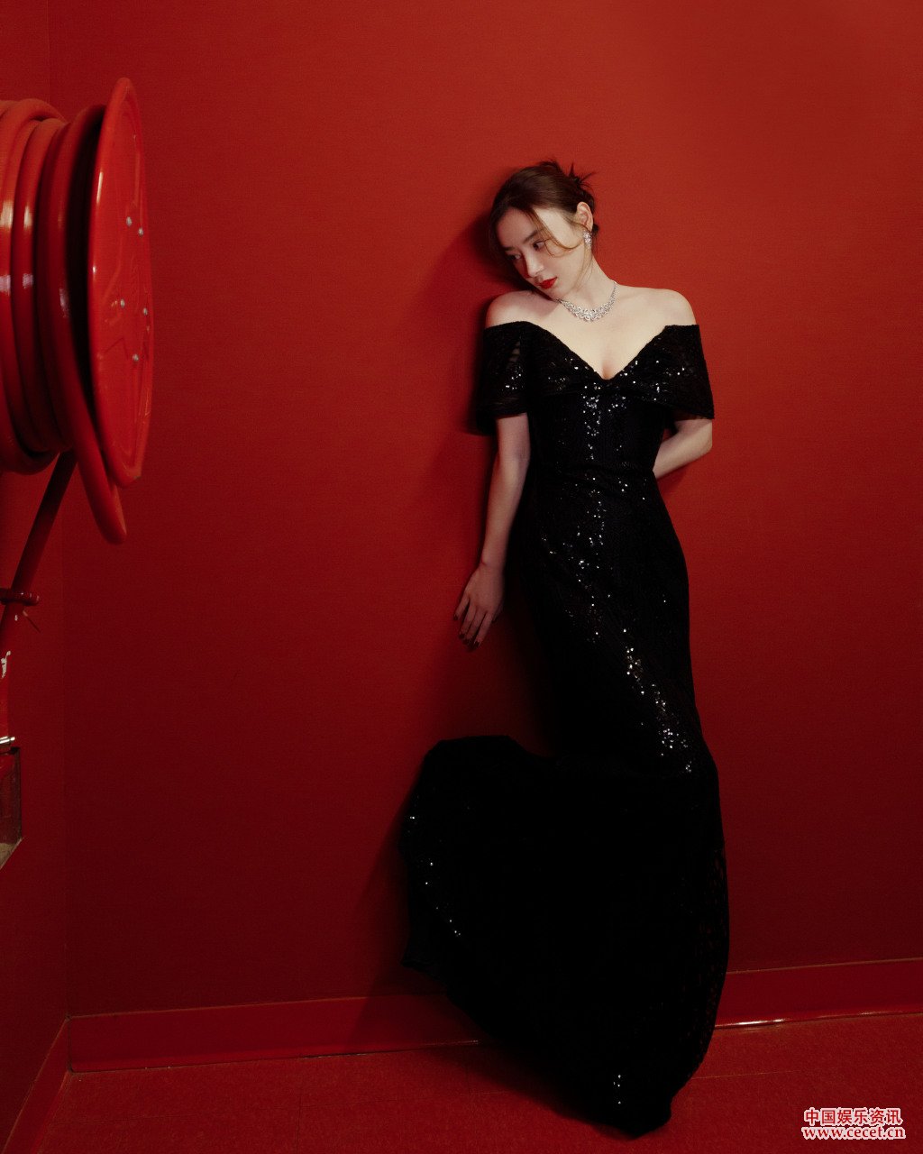 袁姍姍鏤空線(xiàn)條與貼身魚(yú)尾裙擺性感與優(yōu)雅并存