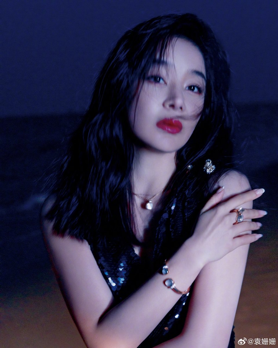袁姍姍置身海邊夜色照 海風(fēng)吹拂秀發(fā)氣質(zhì)清冷