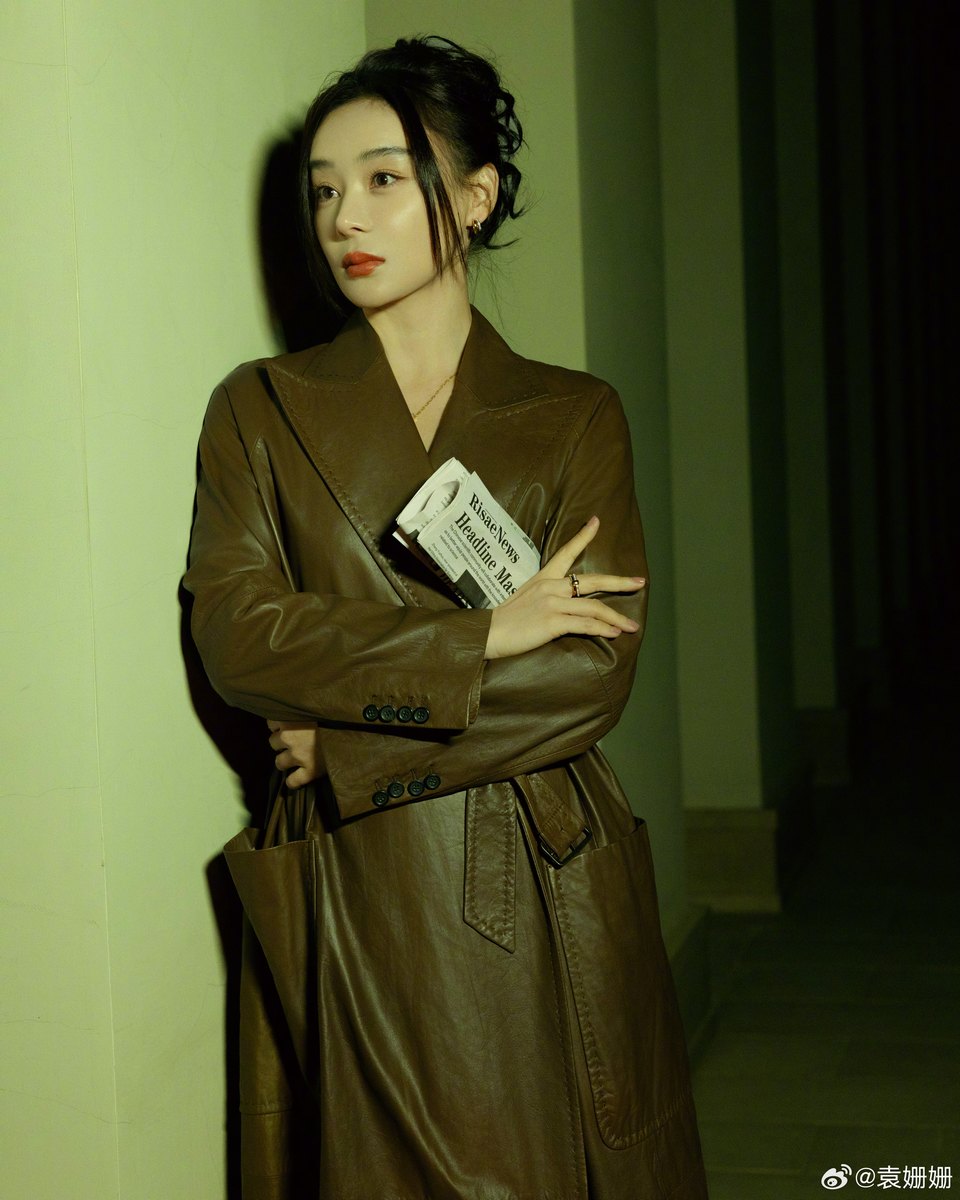 袁姍姍身著(zhù)皮質(zhì)大衣動(dòng)靜自如 以簡(jiǎn)約釋放灑脫