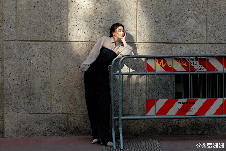 袁姍姍行走于米蘭街頭 舉手投足流露自由灑脫