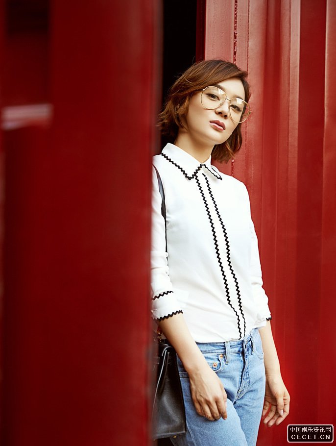 袁姍姍文藝范兒街拍 褲腳解放顯露修長(cháng)美腿