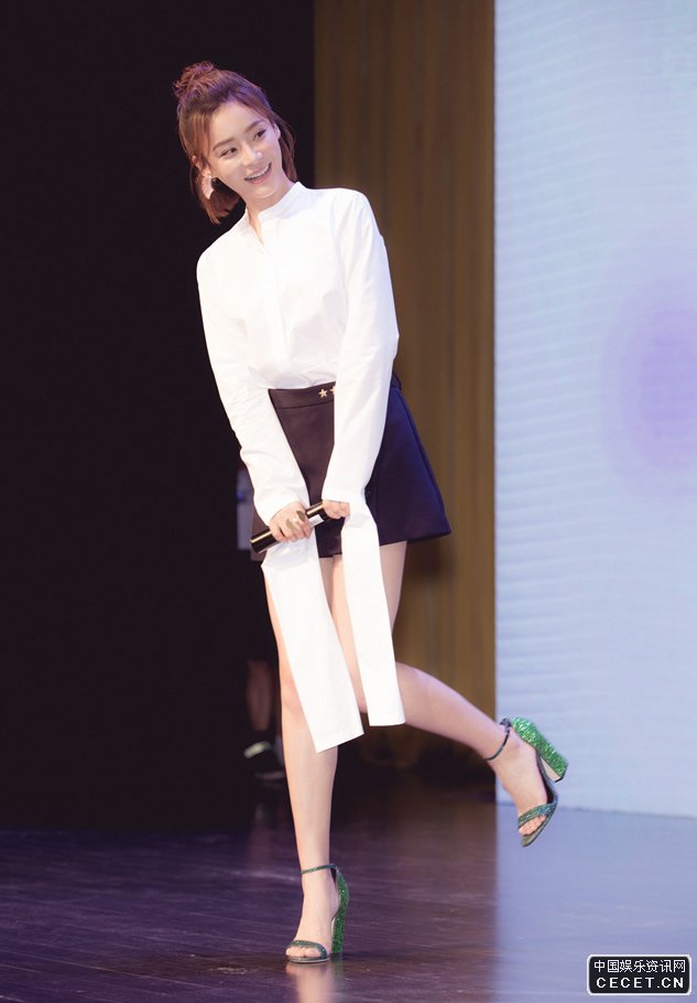 袁姍姍清爽裝扮現身 白色襯衫搭配黑色短裙