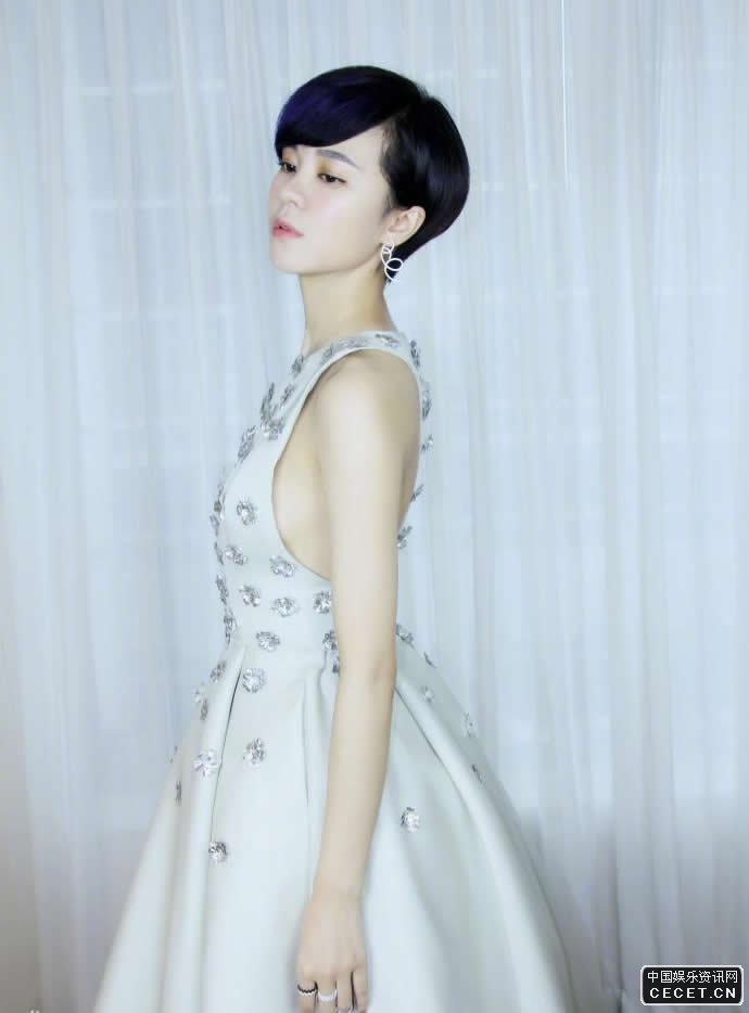 郁可唯美照彰顯氣質(zhì) 淡色系長(cháng)裙嬌艷欲滴