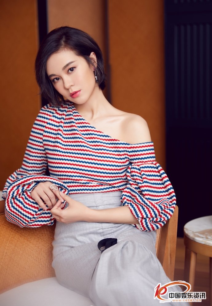 郁可唯條紋衫露出香肩 高開(kāi)衩裙秀出修長(cháng)美腿