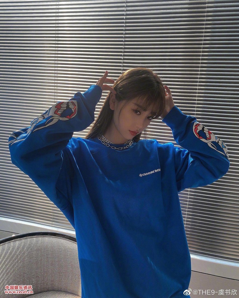 虞書(shū)欣藍色衛衣健美褲 對鏡凹造型活力滿(mǎn)滿(mǎn)
