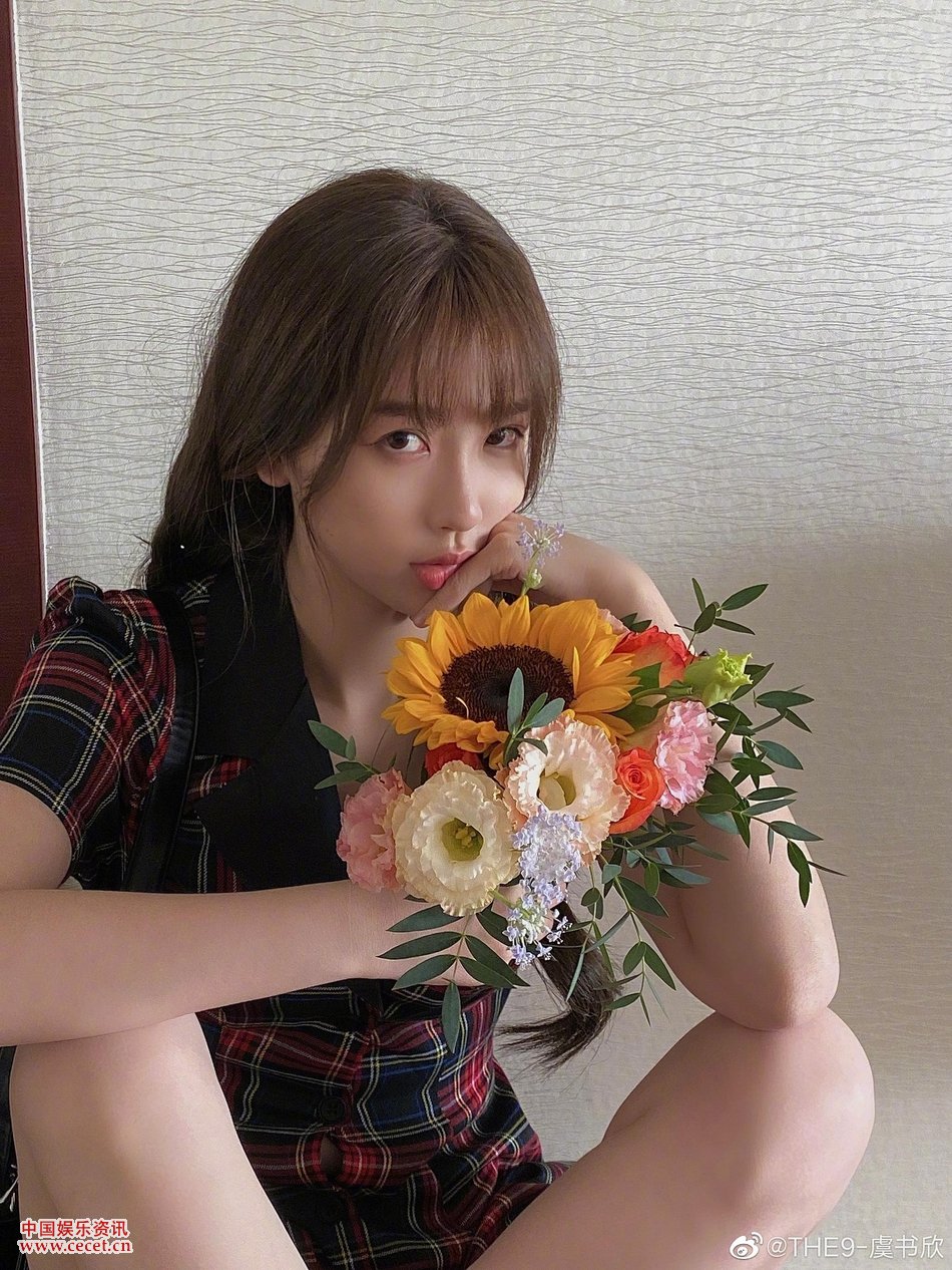 虞書(shū)欣紅色格紋連衣裙 扎雙麻花辮清新俏麗