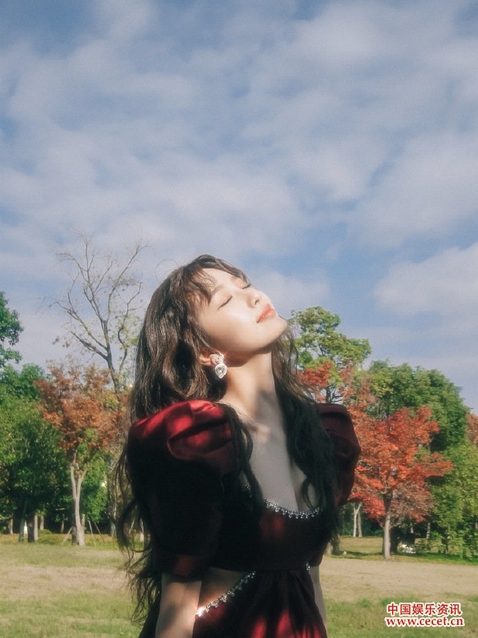 虞書(shū)欣復古絲絨裙美照 長(cháng)發(fā)微卷嬌俏可愛(ài)