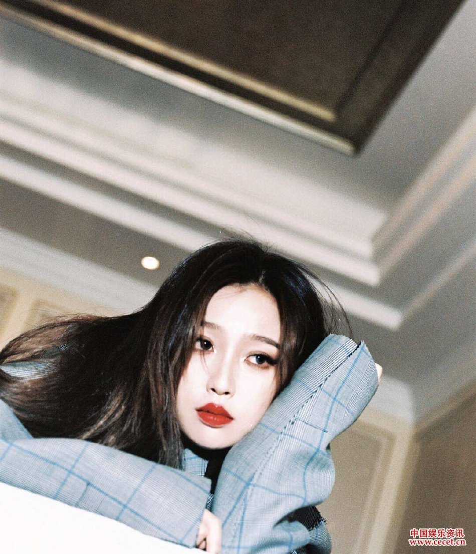 虞書(shū)欣黑色蕾絲透視吊帶裝 紅唇造型美艷十足