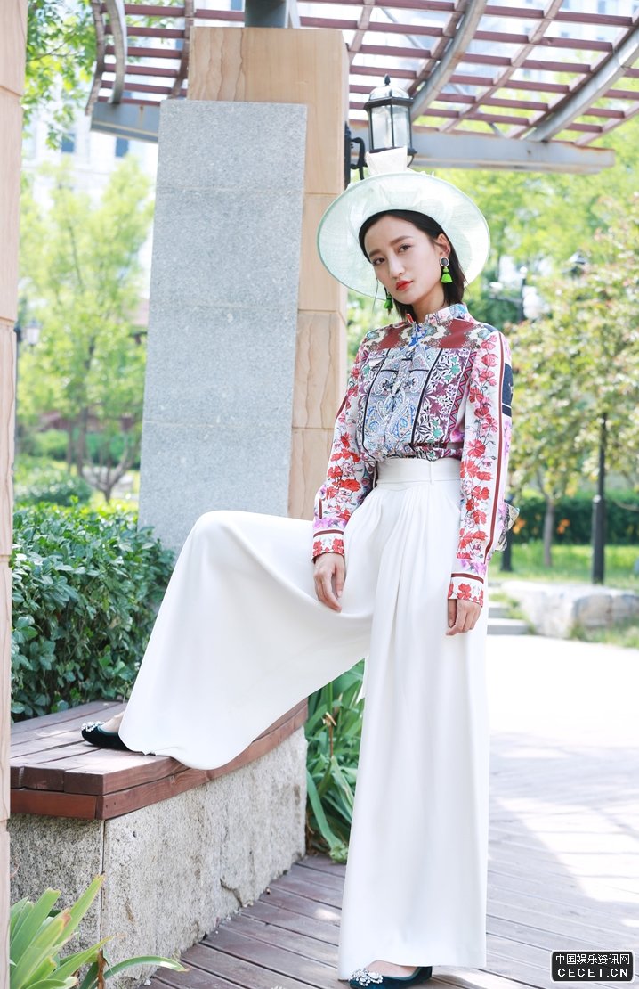 禹童初秋寫(xiě)真時(shí)尚魅力 復古襯衫白色闊腿褲