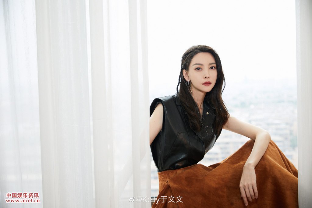 于文文黑色皮上衣美照 酷帥造型優(yōu)雅大方