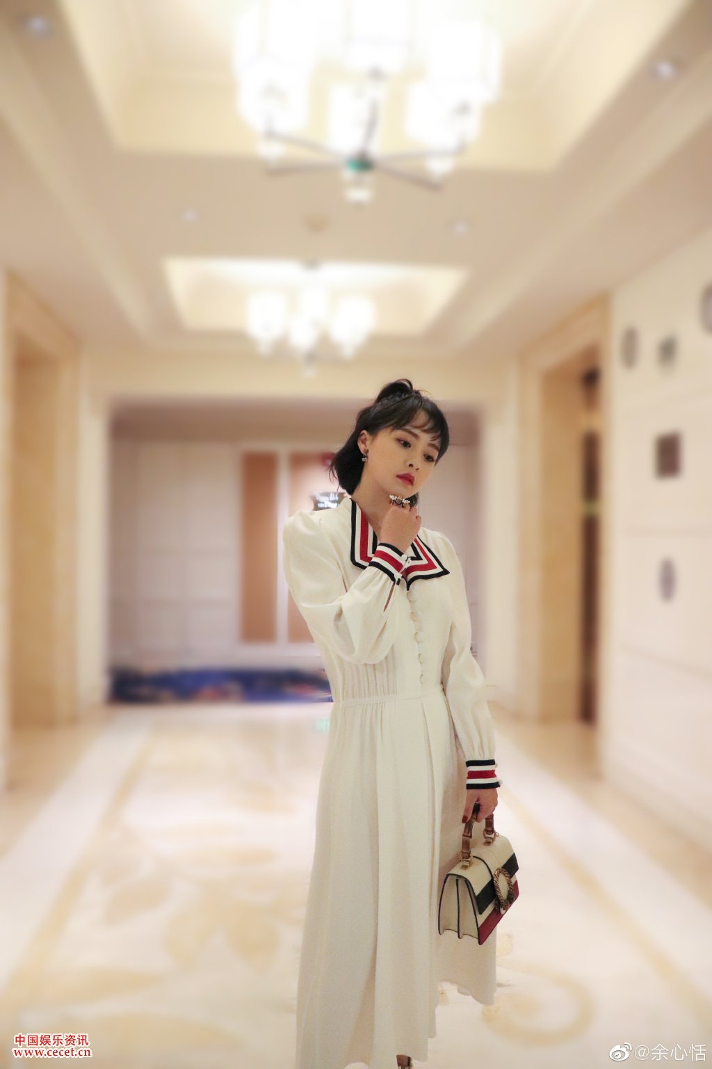 余心恬白裙清新穿搭照 秀氣的妝容美若天仙