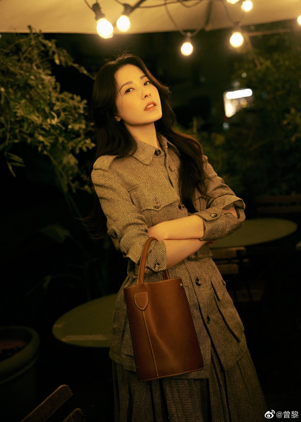 曾黎利落的復古粗花呢套裝勾勒出懷舊的色調