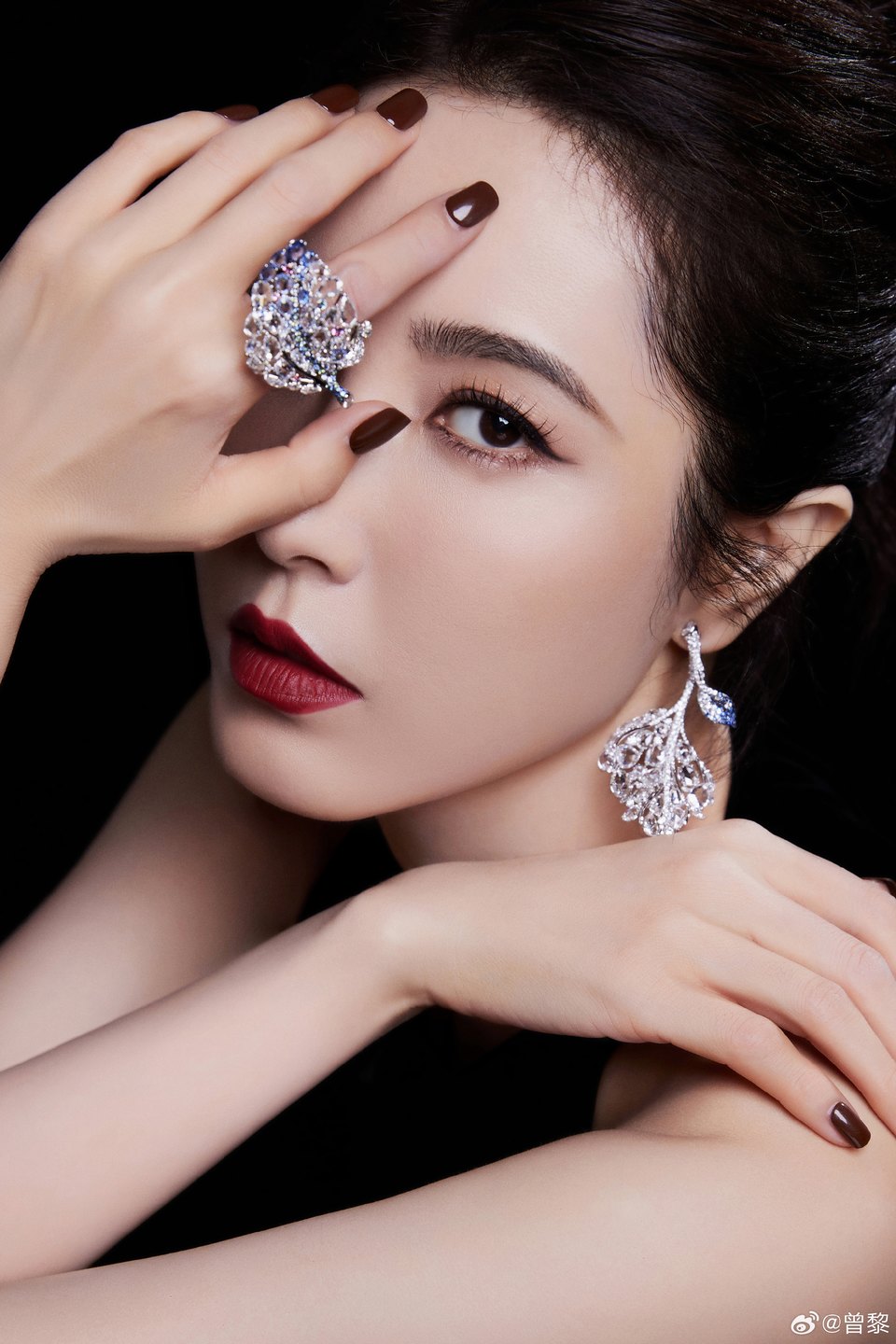 曾黎紅唇美艷造型 暗調光影勾勒精致五官輪廓