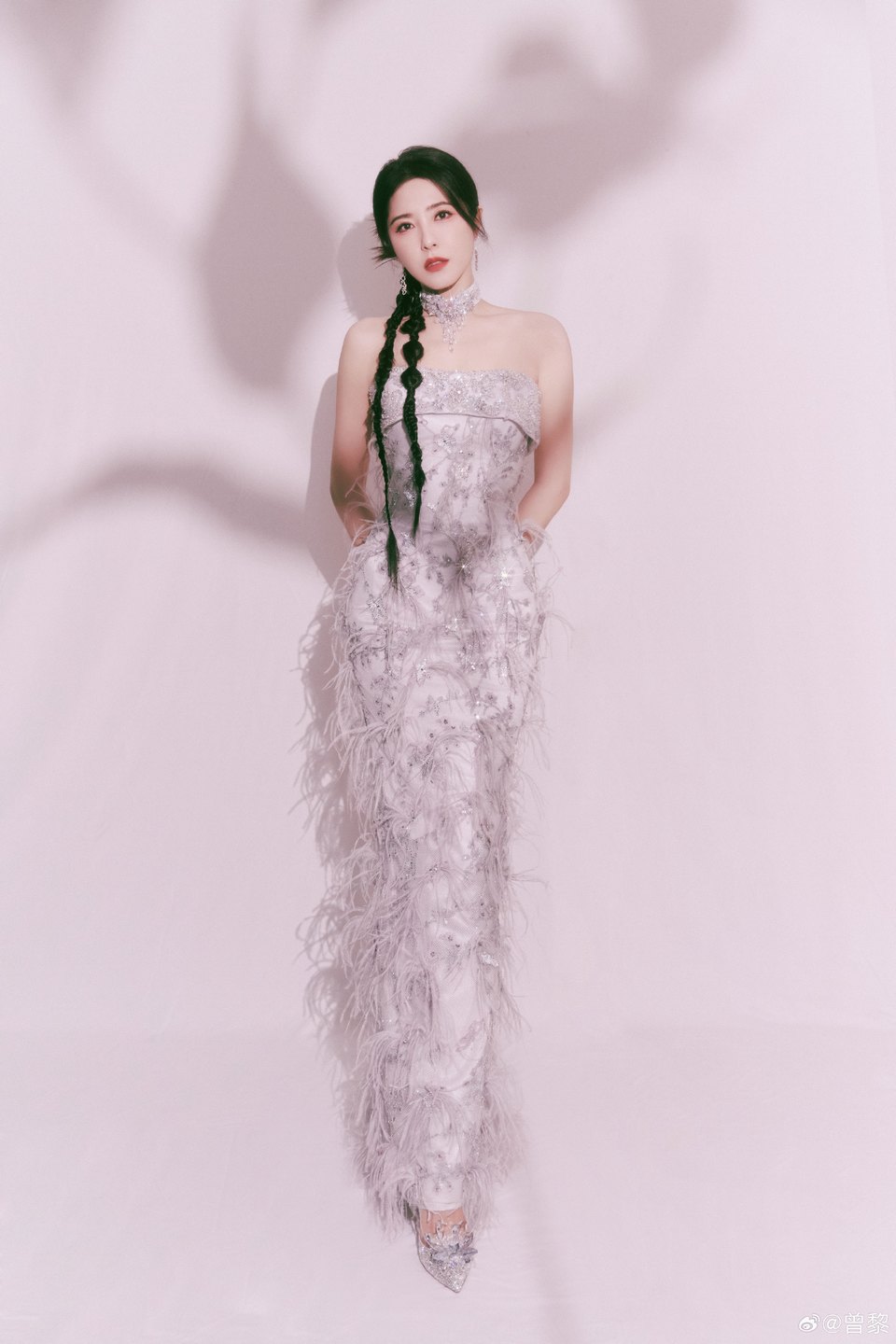 曾黎抹胸羽毛長(cháng)裙增添溫婉氣質(zhì) 身材曲線(xiàn)玲瓏有致