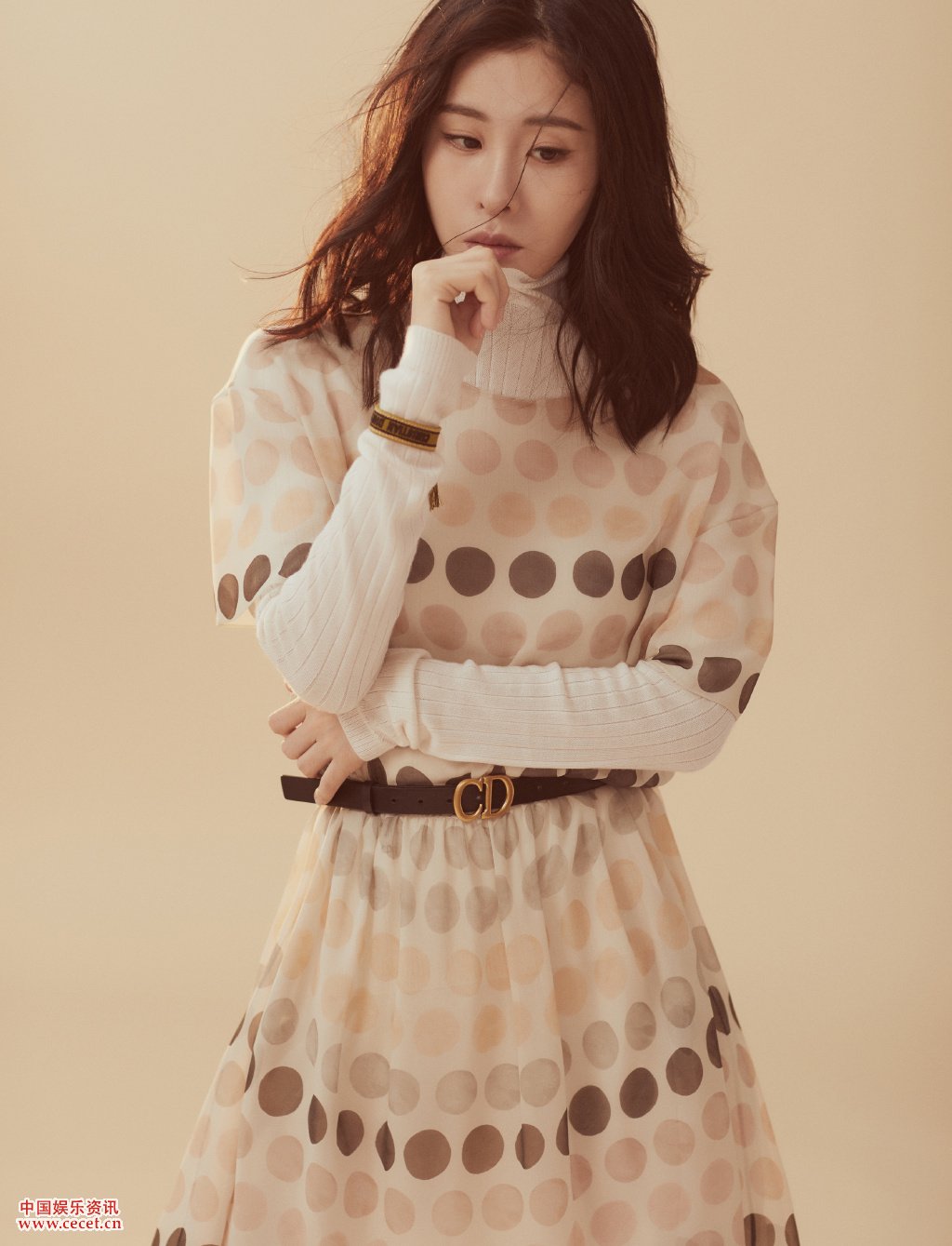 張碧晨波點(diǎn)連衣裙既顯現復古色彩又不失文藝格調