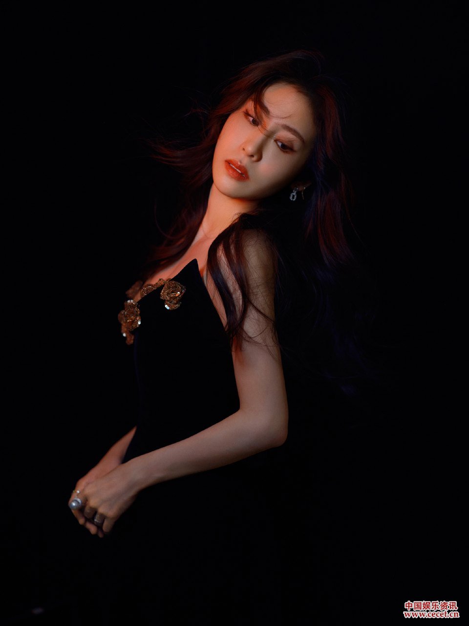 張碧晨清冷極致黑色格調 玫瑰縈繞勾勒浪漫