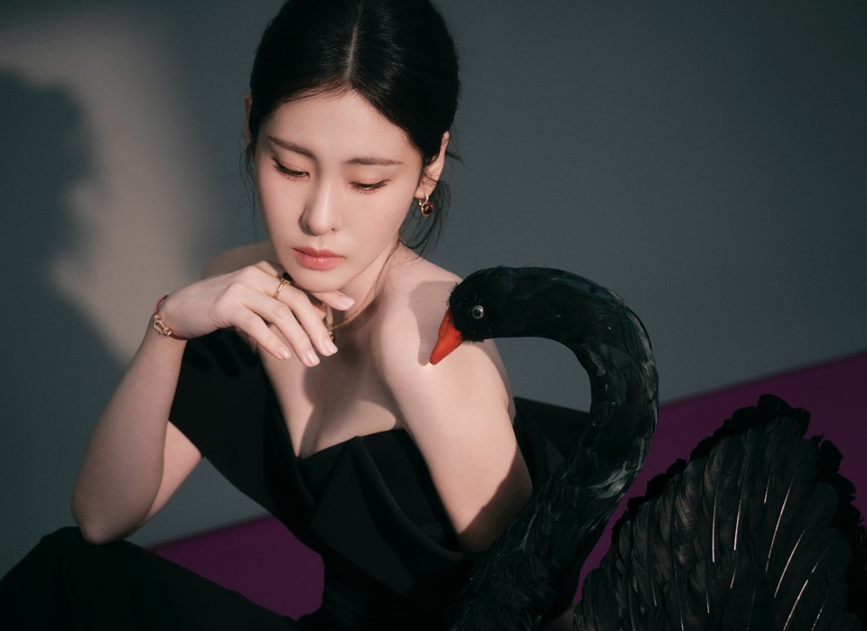 張碧晨眼波輕漾藏著(zhù)星辰靜謐 光影在裙擺織成暗紋