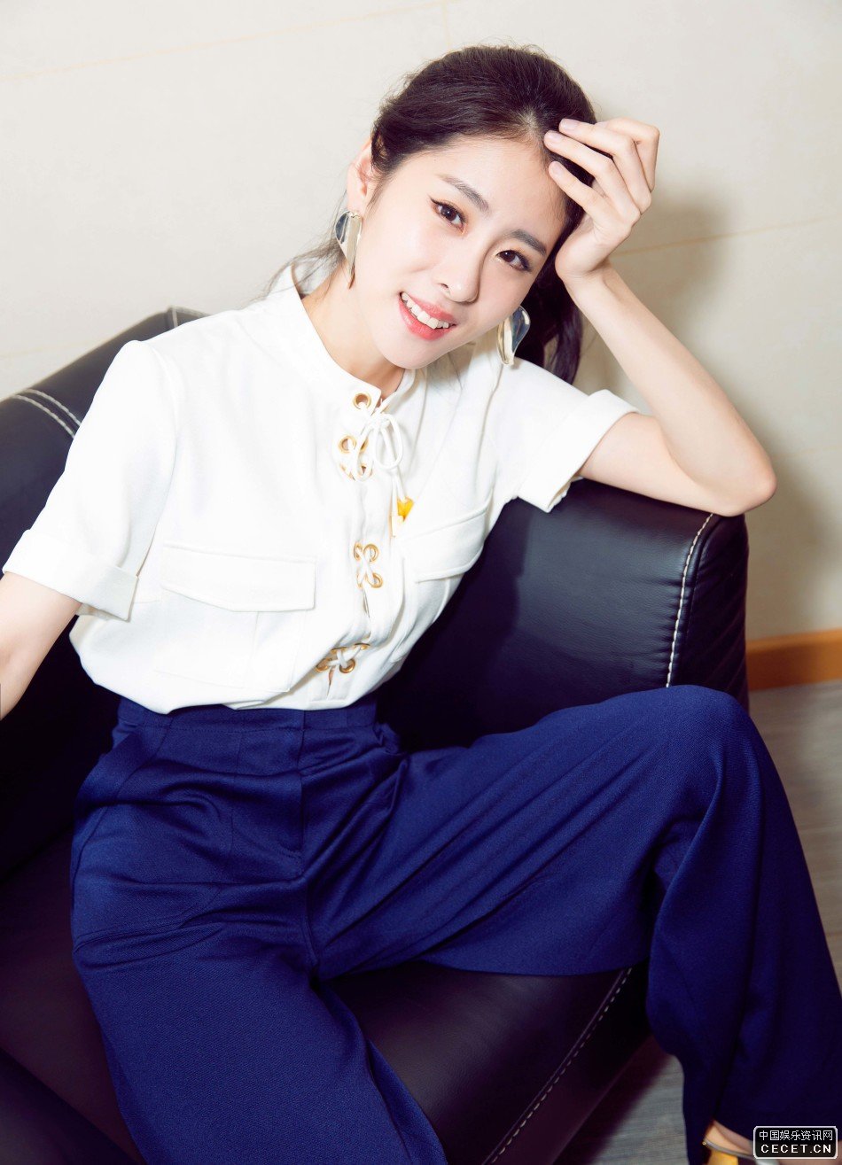 張碧晨帥氣迷人氣質(zhì) 短袖巧搭藍色闊腿長(cháng)褲