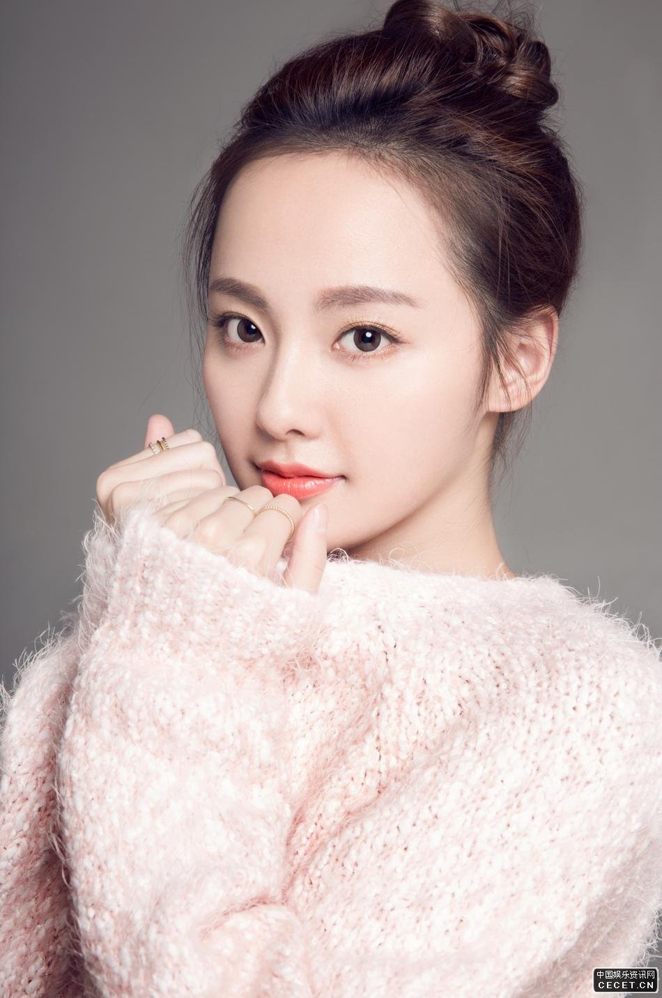 張嘉倪暖春寫(xiě)真 粉嫩毛衫搭配清爽丸子頭