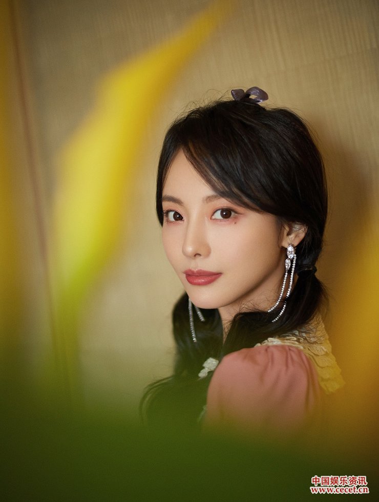 張嘉倪氛圍感寫(xiě)真 泡泡袖粉色小禮裙俏皮甜美