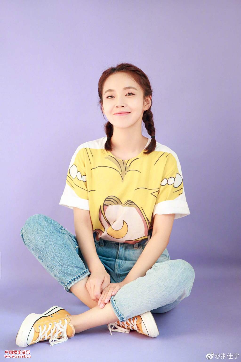 張佳寧與小狗萌寵合照 雙馬尾更顯少女情懷