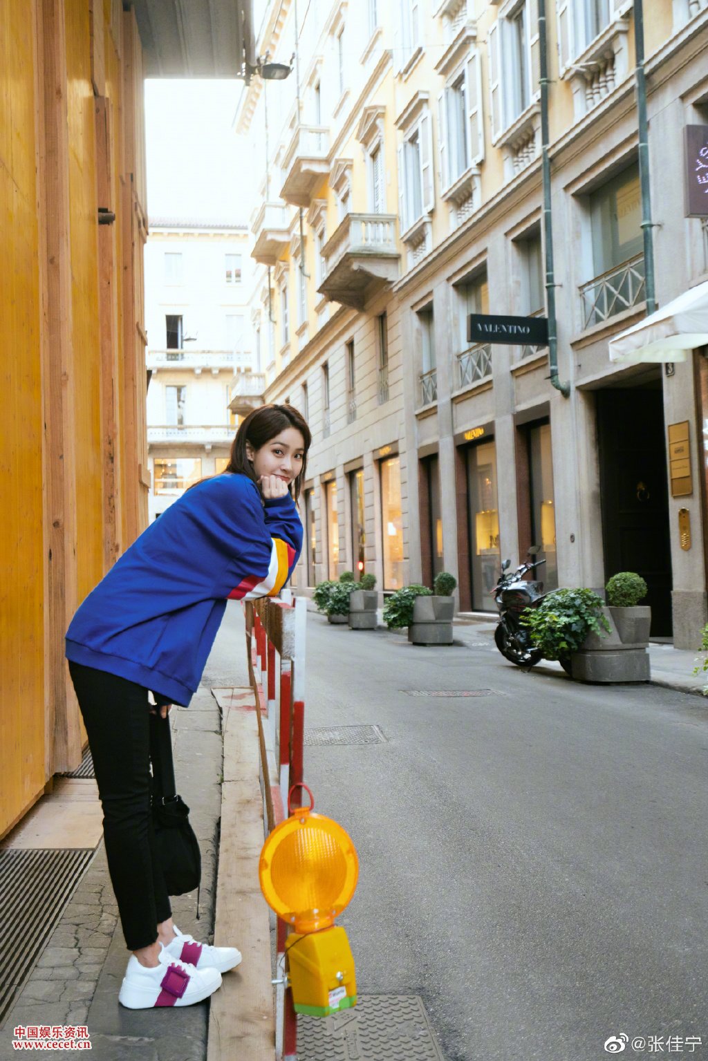 張佳寧藍色運動(dòng)服出街 簡(jiǎn)約演繹個(gè)性品味
