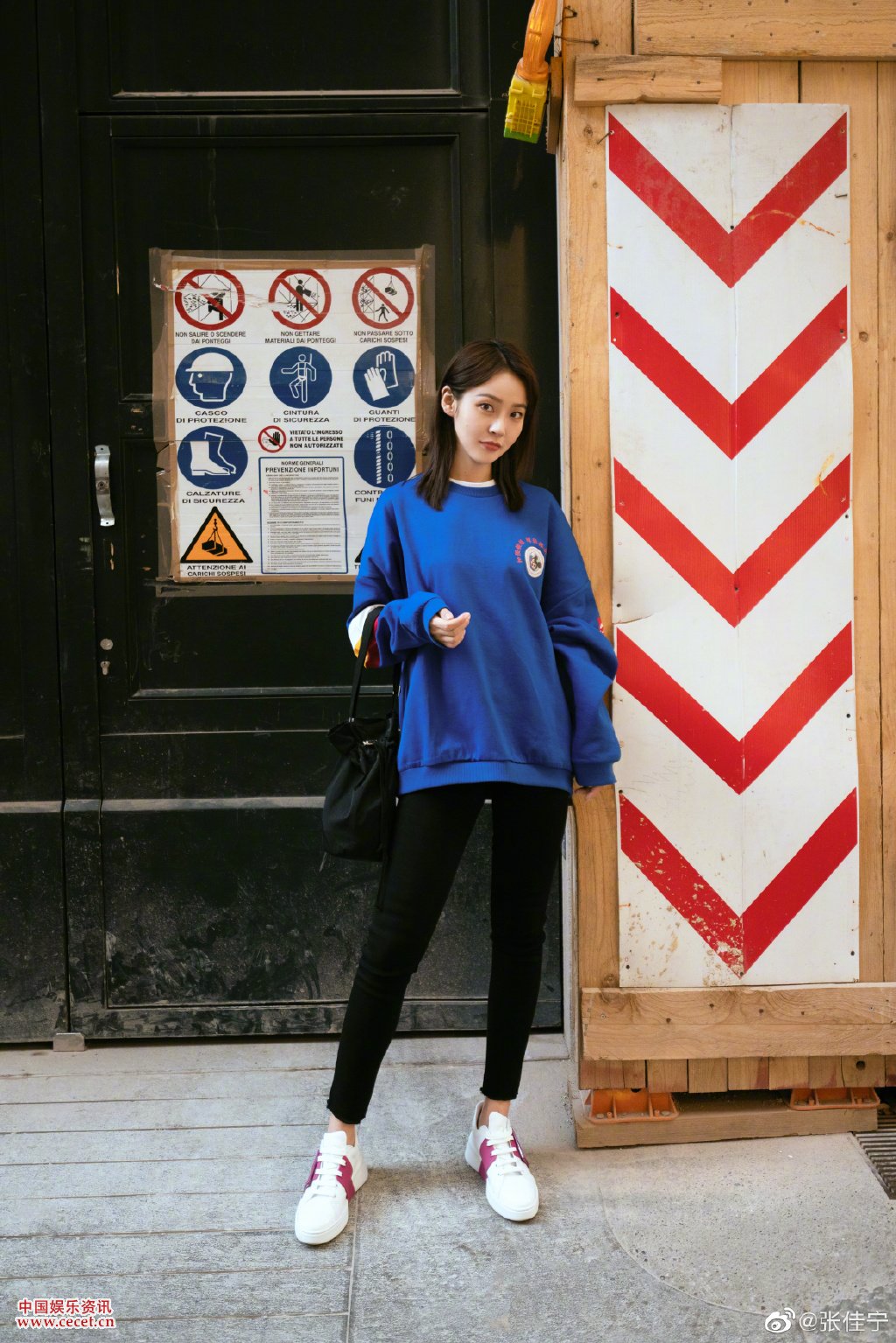 張佳寧藍色運動(dòng)服出街 簡(jiǎn)約演繹個(gè)性品味