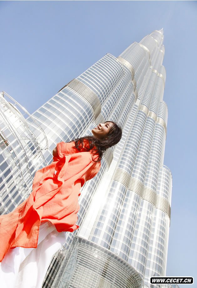 張靜初迪拜塔街拍 沐浴陽(yáng)光展現慵懶女人味