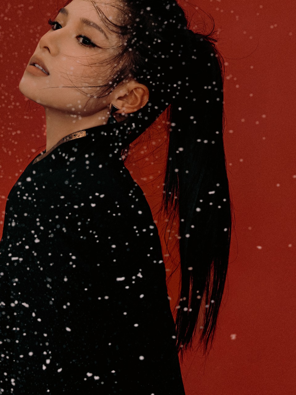 張婧儀墨衣長(cháng)劍颯斬風(fēng)云 束發(fā)馬尾凌風(fēng)如刃