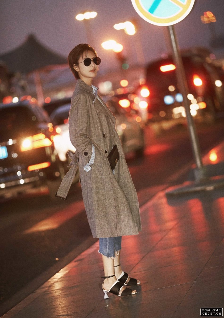 張儷春裝現身機場(chǎng) 風(fēng)衣搭配淺色破洞牛仔褲