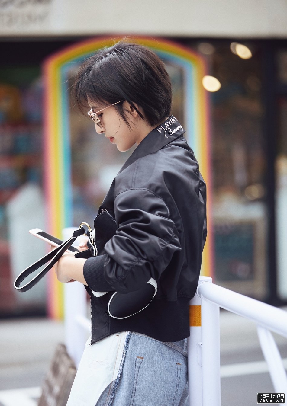 張儷獨特的“反穿”設計短褲搭配帥氣短靴