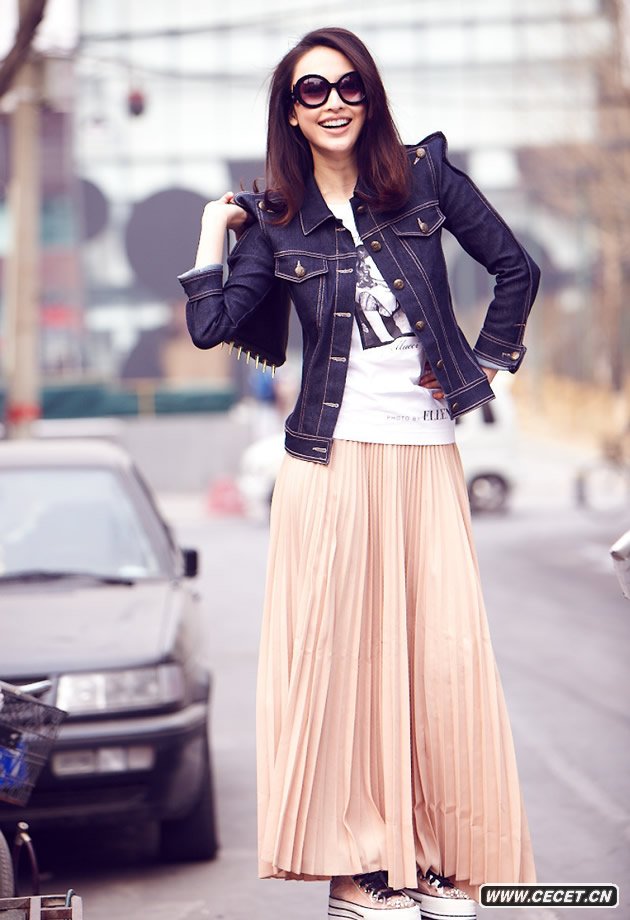 張儷曝光最新街拍照片 強勢回歸朋克牛仔夾克