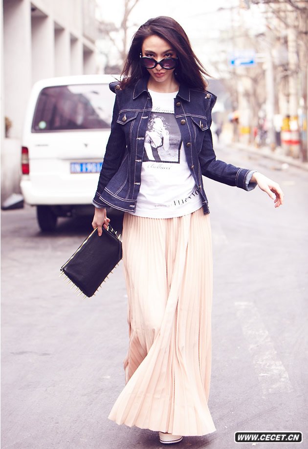 張儷曝光最新街拍照片 強勢回歸朋克牛仔夾克