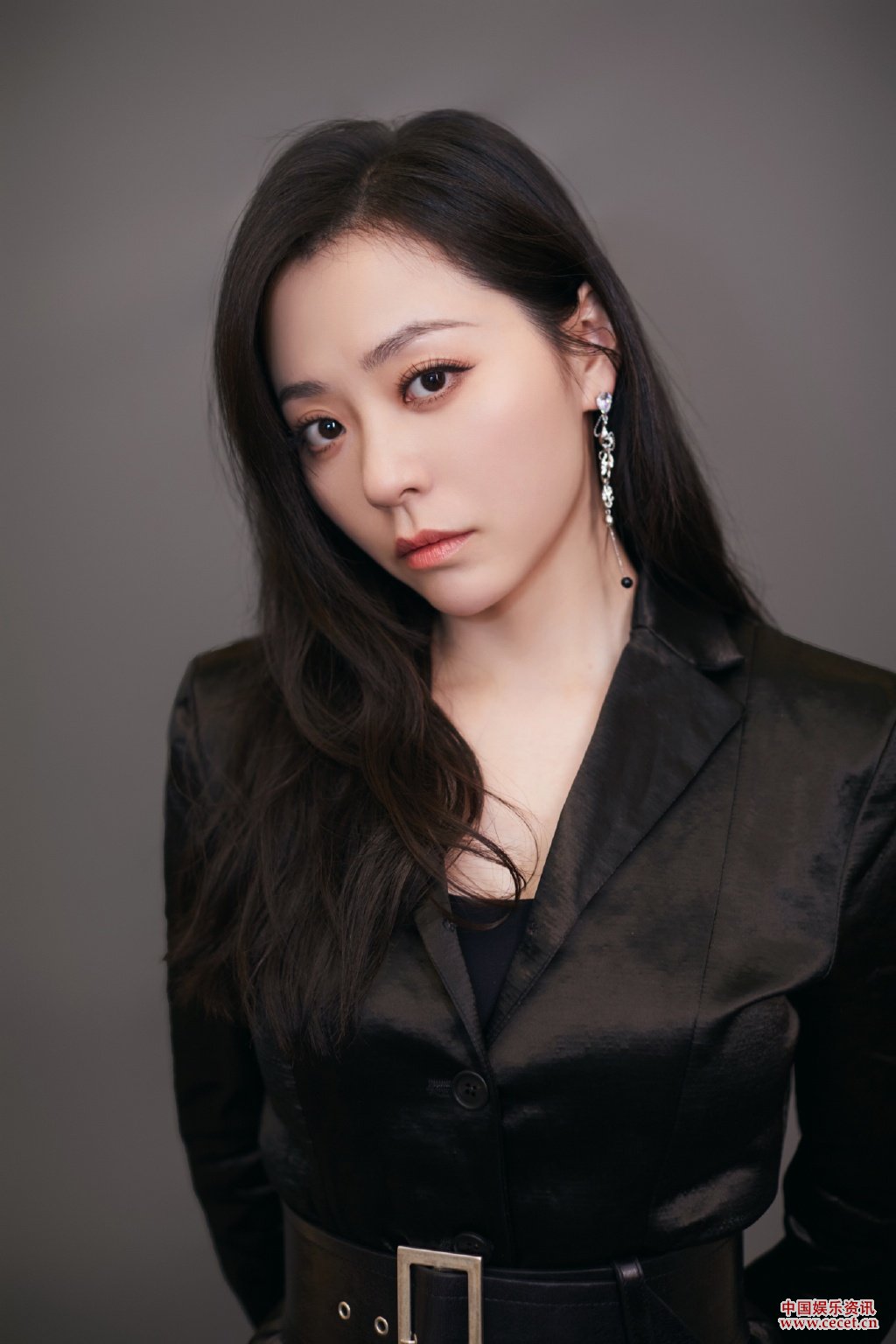 張靚穎黑色外套搭配粉色長(cháng)裙演繹多面魅力