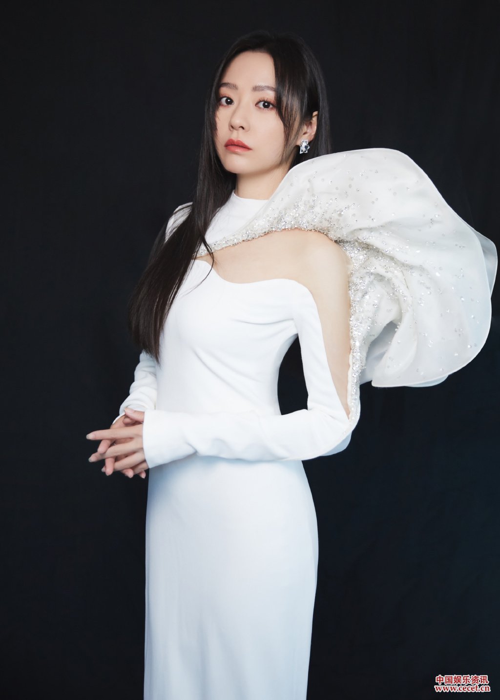 張靚穎白魚(yú)尾長(cháng)裙造型 白如皓月溫婉如水