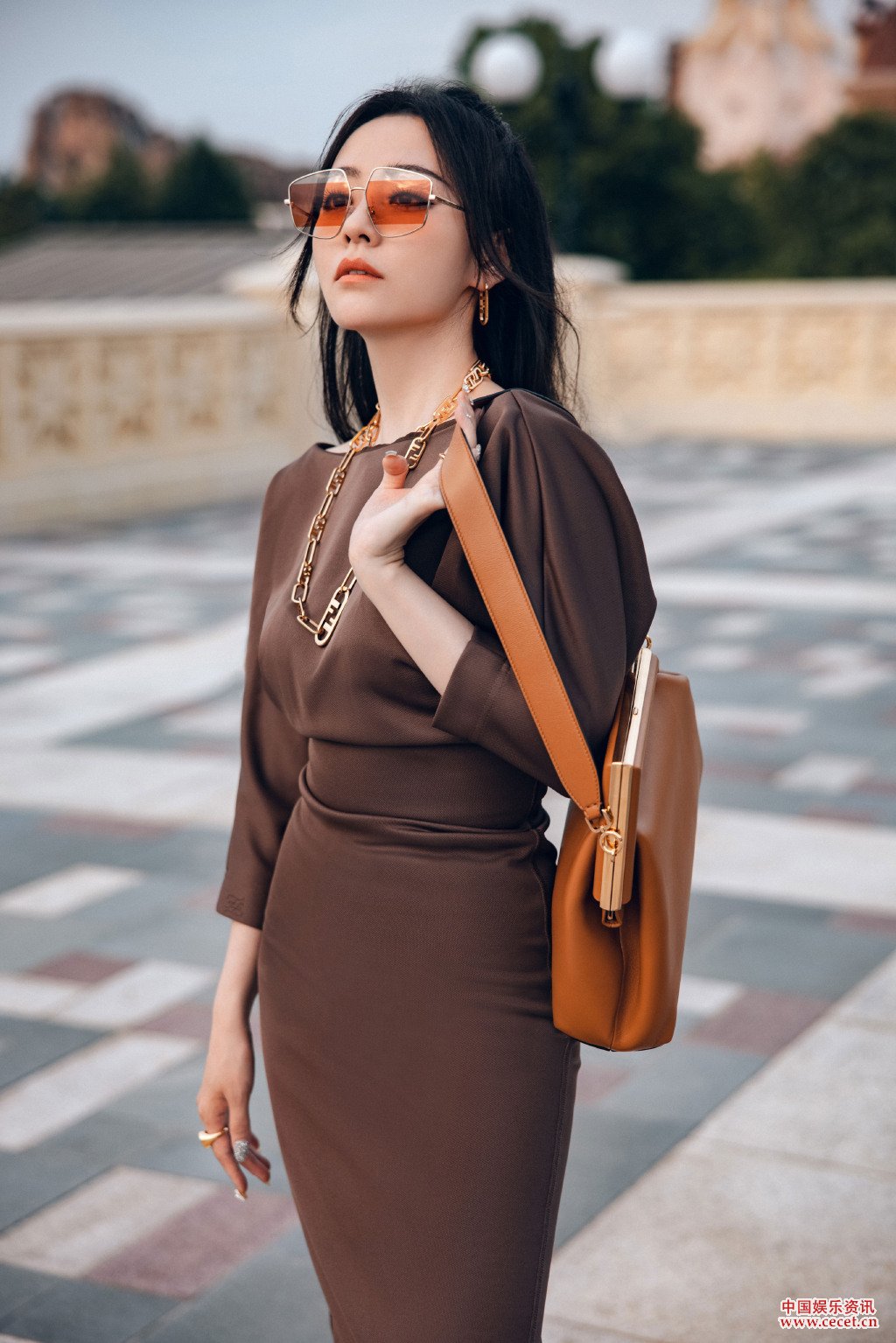 張靚穎悠閑漫步城堡中 眼神凌厲氣場(chǎng)全開(kāi)